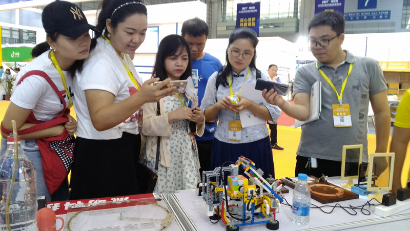 教具研发和生产企业、科学和创客老师们等专业观众们纷纷录像留念